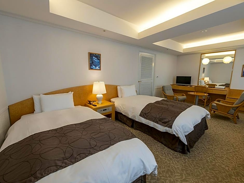 This twin room features air conditioning and electric kettle. Some rooms have views of Kirishima city.